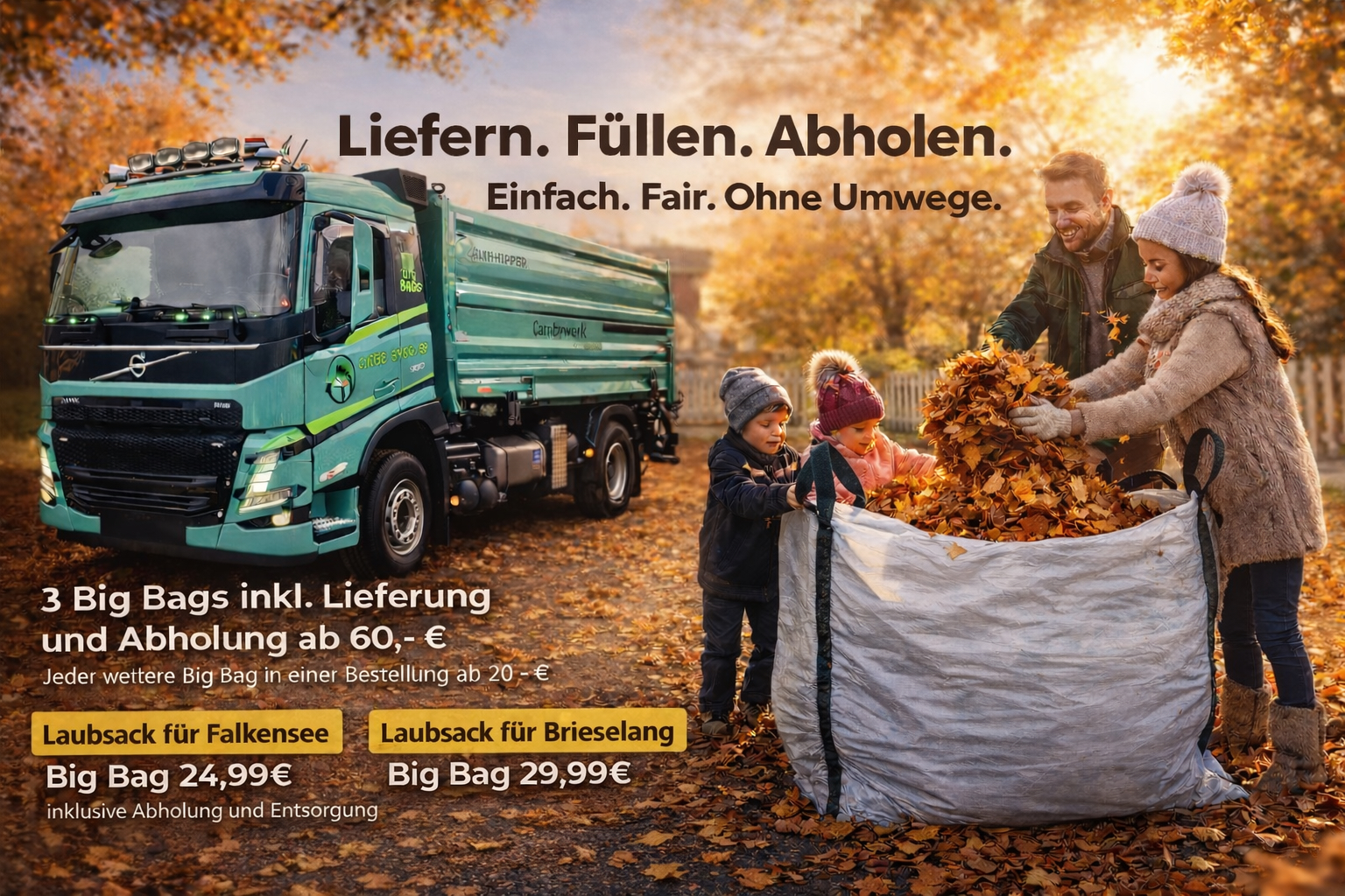 Laubsack liefern (auch kontaktlos!), abholen und ökologisch entsorgen lassen.